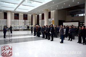 11月6日,蒋维崧先生诞辰100周年图谱展暨山东大学教职工书画展在中心校区明德楼一楼大厅开展。山东大学副校长胡金焱出席开幕式并致辞。